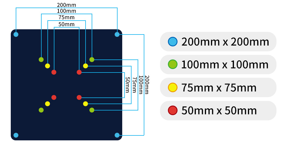 Ekranınızın arka tarafında bulunan (dört) yatay ve dikey delik arasındaki mesafeyi ölçmek, televizyonunuzun , monitörünüzün kısaca ekranınızın VESA boyutunu bulmanın en hızlı ve kolay yoludur.