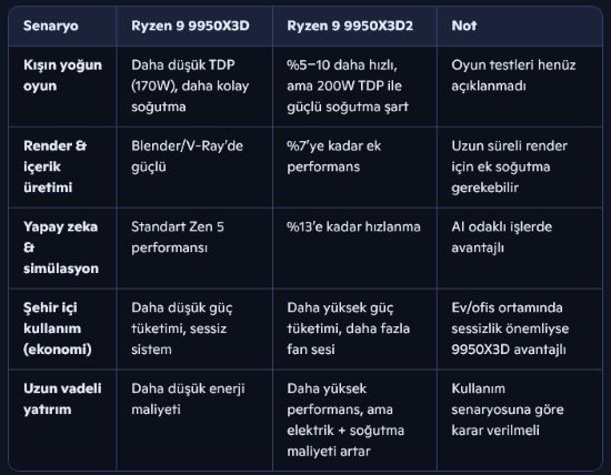 - Render/AI odaklı → 9950X3D2 daha mantıklı