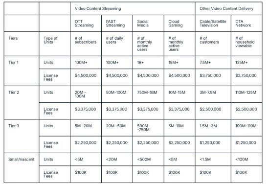 - Access Advance: HEVC için yıllık yaklaşık 63 milyon dolarlık üst sınır.