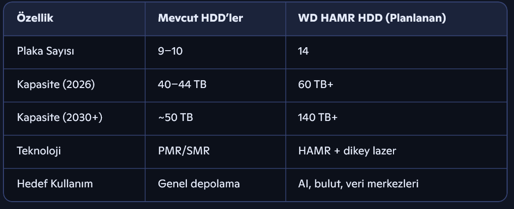 - Uzun Vadeli Vizyon: WD, 2030’larda HDD’lerin hala veri merkezlerinde kritik rol oynayacağını öngörüyor. SSD’ler hız avantajına sahip olsa da, HDD’ler maliyet/kapasite açısından vazgeçilmez olmaya devam edecek.